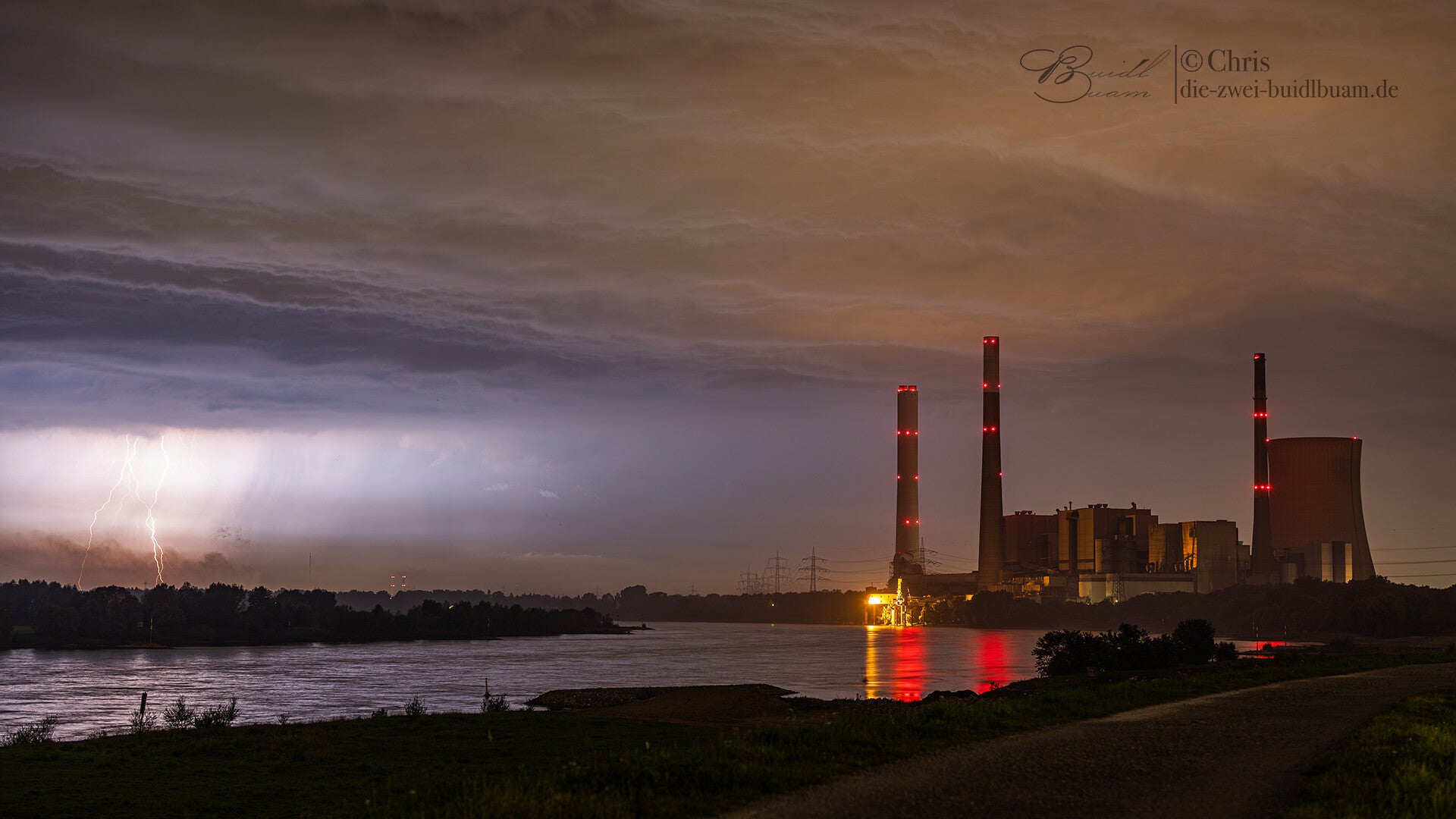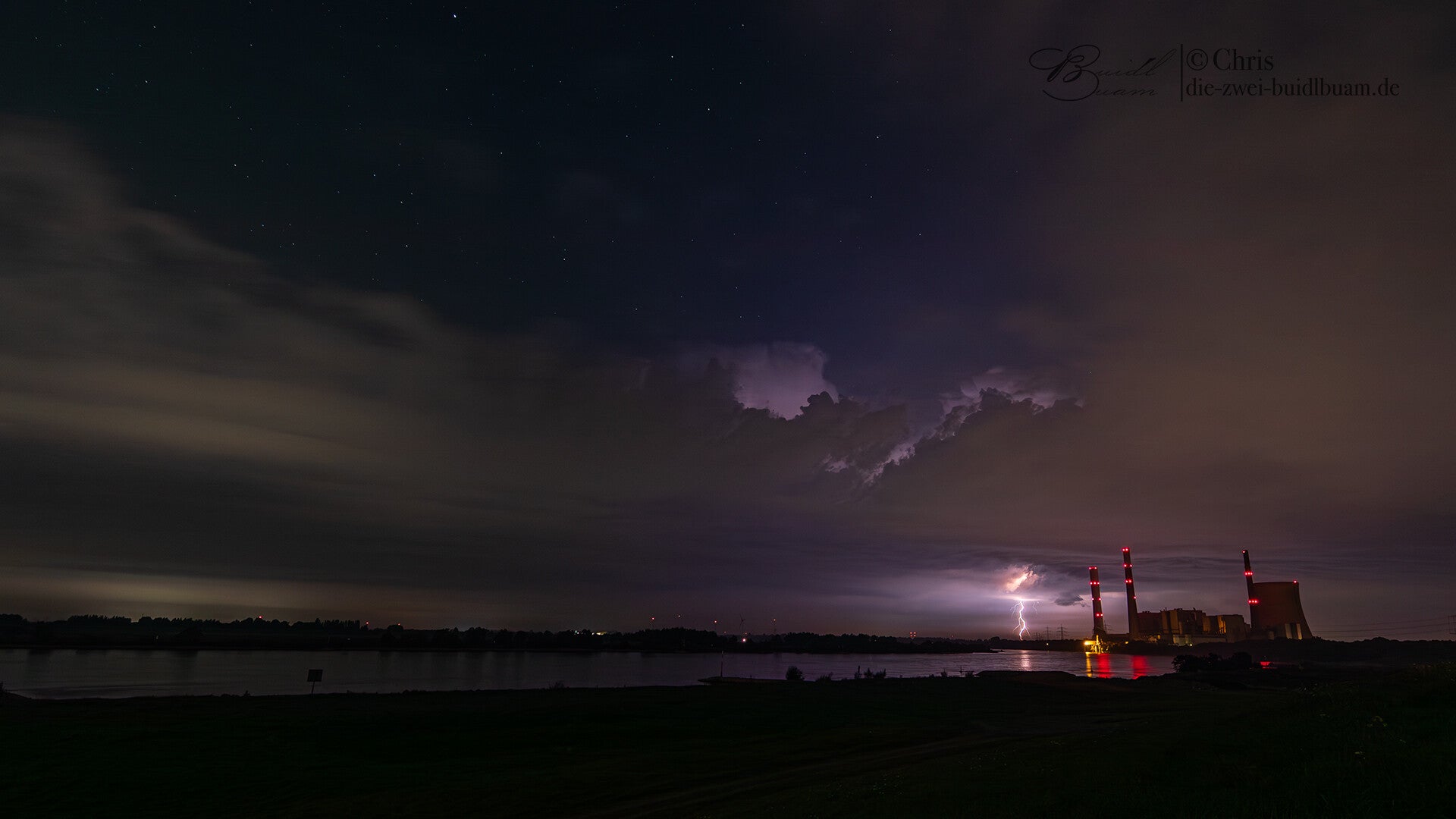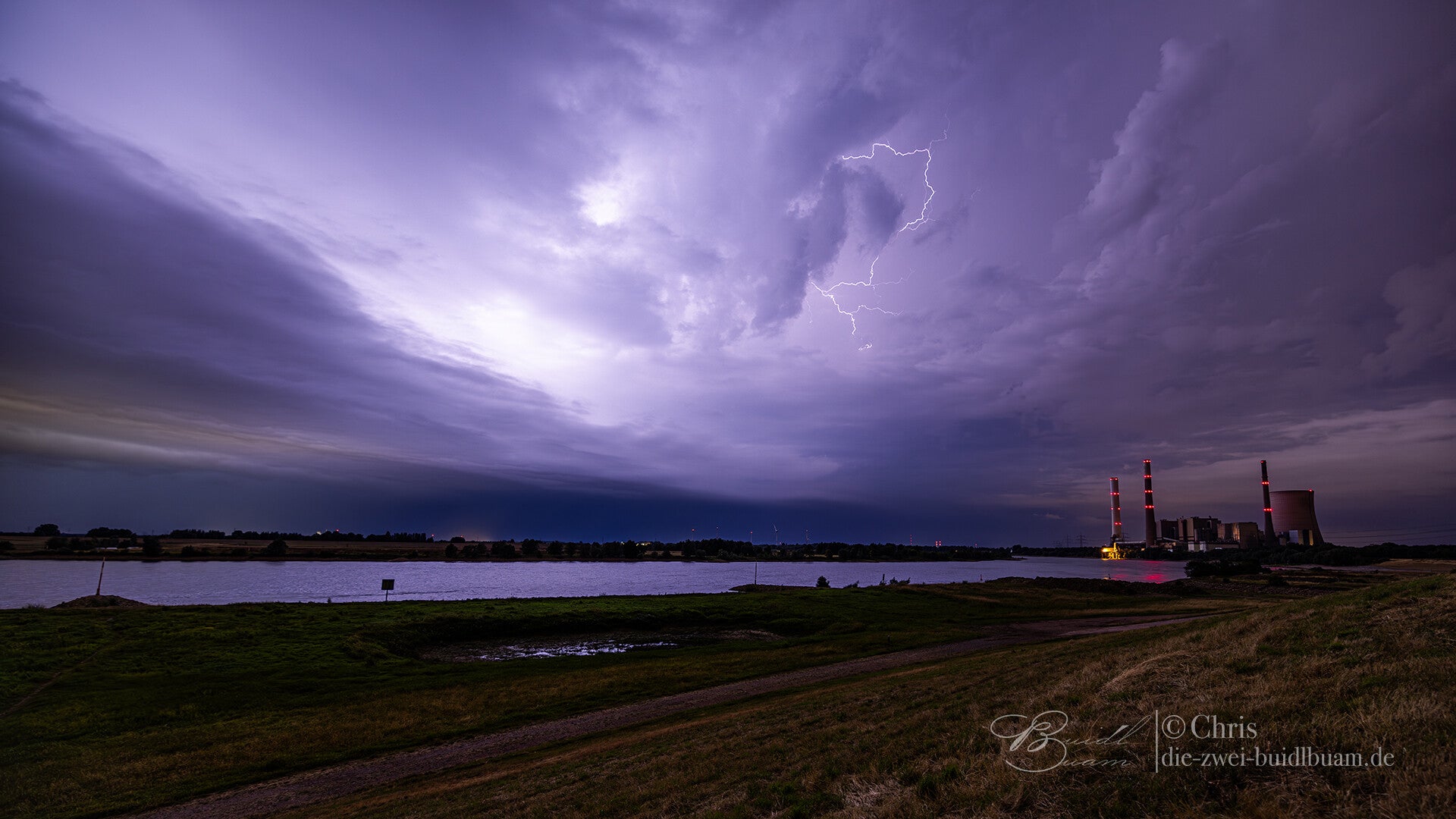 Nächtliche Kaltfront Niederrhein - Aufgenommen in der Nacht vom 11. auf den 12.07.2023 vom Rheindamm bei Dinslaken mit Blick Richtung Westen
