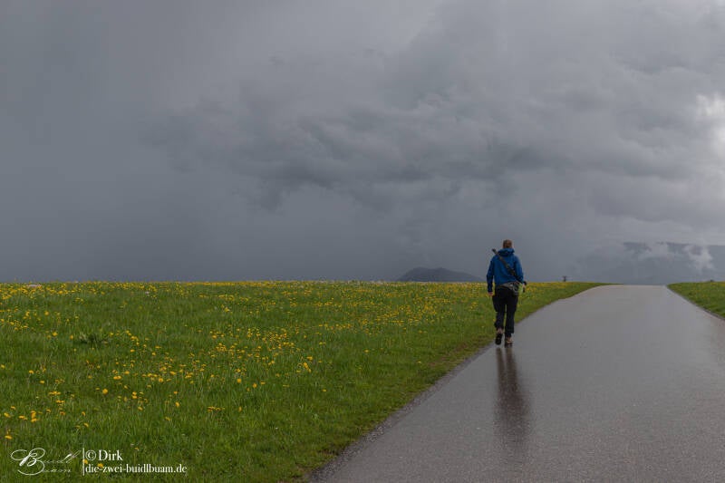 In den späteren Abendstunden näherte sich aus Westen nur noch ein kleineres, aber intensives, Regengebiet. Dieses wollten wir von Niederndorferberg abpassen - es sollte das südliche Kufstein überqueren. In Kombination mit der untergehenden Sonne versprach das noch lohnende Bilder.