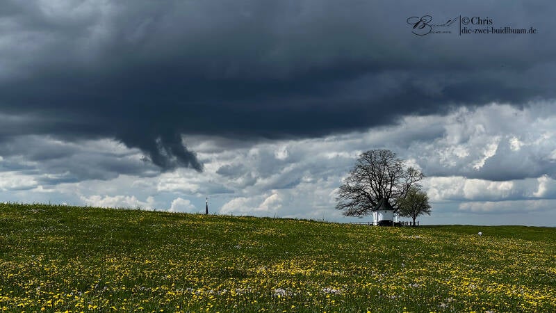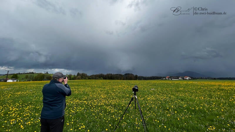 Endlich geht's wieder los. Bereits Tage zuvor hatten wir - unabhängig voneinander - Gelegenheit sehenswerte Strukturen in Schauern und Gewittern und sogar einzelne Blitze bei Nacht fotografisch festzuhalten. Am Samstag, dem 29.04.2023 warteten wir ab den frühen Mittagsstunden in Erwartung einzelner fotogener Schauer bei vielversprechenden Grundvoraussetzungen (leidlich vorhandene Energie, Windscherung und Feuchtigkeit) zum ersten Mal gemeinsam - wie wir es so häufig tun - an der Kapelle in Söllhuben mit Blick über Rosenheim nach Westen.