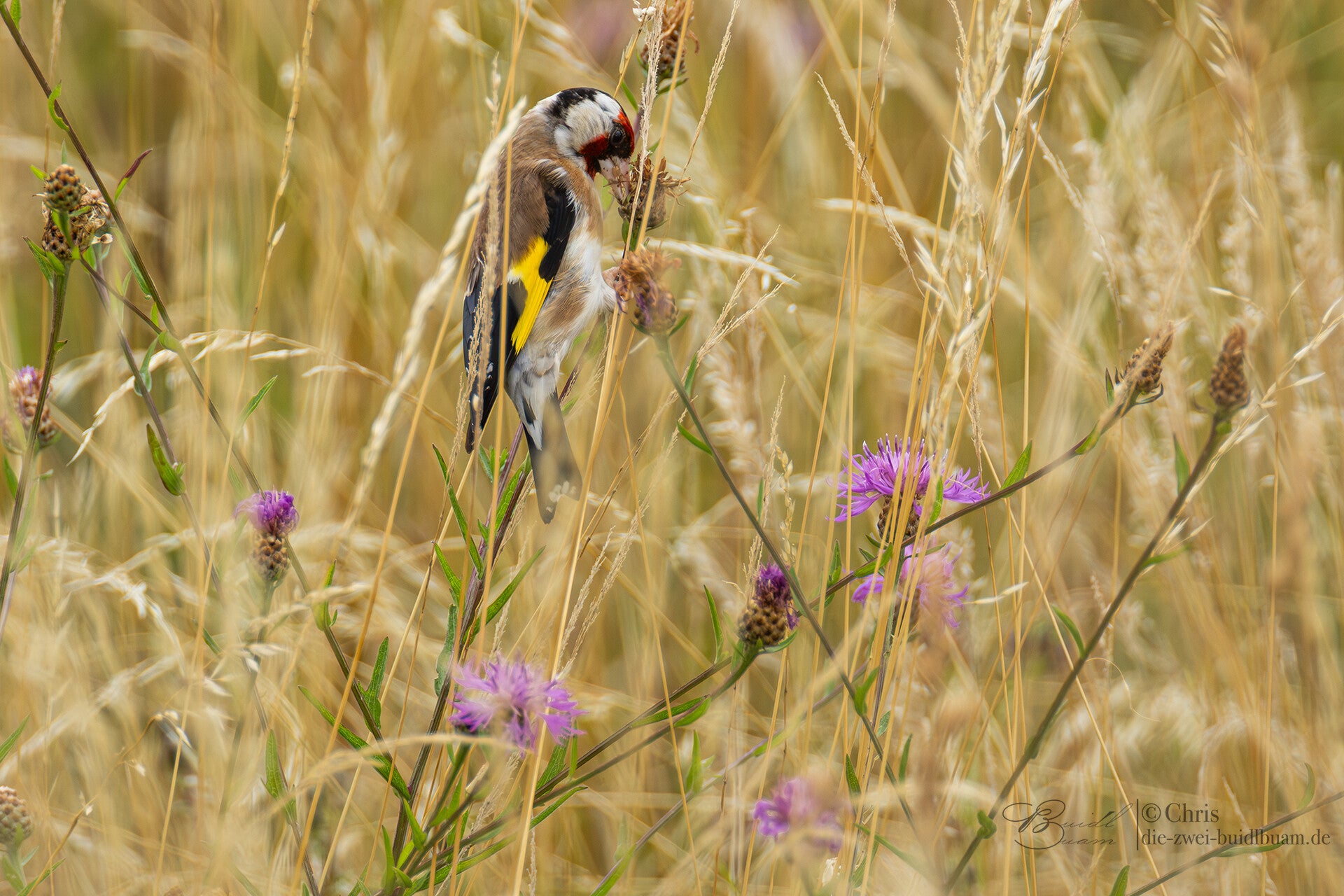 Durch die Umgestaltung der Emschermündung mittels weitläufigem Delta, ist hier weit mehr Raum für Tiere aller Art geboten. Insbesondere Wasservögel und anderes Federvieh hat sich hier sprichwörtlich eingenistet. Wegen der großen Distanzen bietet es sich an, mit höher auflösenden Kameras und eher mehr als weniger Brennweite auf die "Jagd" zu gehen. Neben allen anderen an diesem Tag anwesenden Viechern, hatte es mir ein Stieglitz besonders angetan. Zunächst tänzelte er nur schwer auszumachen im hohen und größtenteils vertrockneten Gras umher und Gras sich an Samen und kleinen Körnern satt. Schließlich beendete er sein Mal und hockte sich auf einen freistehenden Aussichtsast - ein Traum für Fotografen. Sichtlich unbeeindruckt knabberte er recht unmotiviert auf einem Stückchen Blatt herum, bevor...