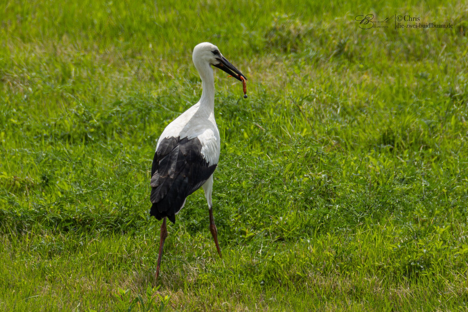 Ein ortsansässiger Ornithologe gesellte sich hinzu und gemeinsam verfolgten wir kurze Zeit das Treiben der zwei Störche. Mit seinem Profi-Spektiv fiel dem Vogelkundler jedoch sehr bald auf, dass einer der beiden Störche wiederholt einen länglichen Gegenstand aufsammelte und drohte diesen herunter zu schlingen. Klar habe er den Gegenstand als Angelköder mit Haken ausgemacht.