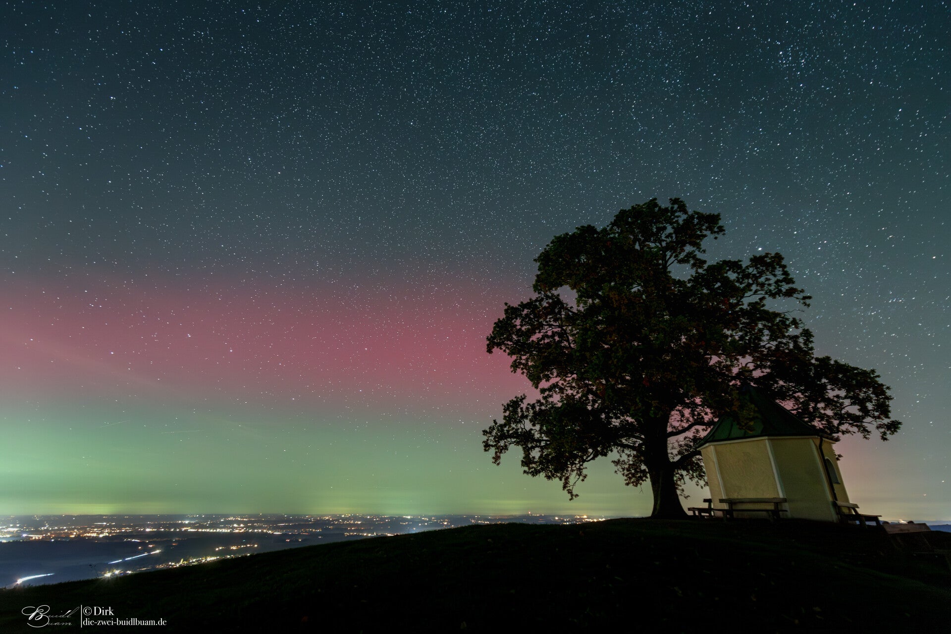 Tja, eigentlich wollte ich am 18.10.2025 endlich den Kometen C/2025 A6 Lemmon am nordwestlichen Nachthimmel fotografieren. Das hat eh wieder ewig gedauert, um ihn vor die Linse zu bekommen. Zumeist war daran wieder das liebe Wetter schuld. Wolken, Dunst und Nebel - die Herbst üblichen Verdächtigen! Somit gings am besagten Abend raus zum Samerberg an die Kapelle, denn endlich passte der Himmel halbwegs.