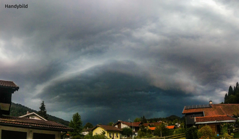 Was eine Wetteraktion über dem Heimatdorf. Eine Lehrbuch mäßig auf -und ausgebaute Superzelle bildete sich direkt daheim vor Ort. Die Mesozyclone baute sich hochexplosiv auf Höhe Niederndorfer Berg / Rettenschöss / Spitzstein auf und aus, bevor sie Richtung Kössen auf Reisen ging.